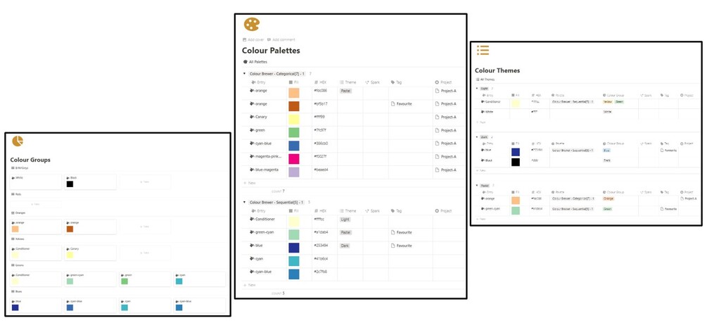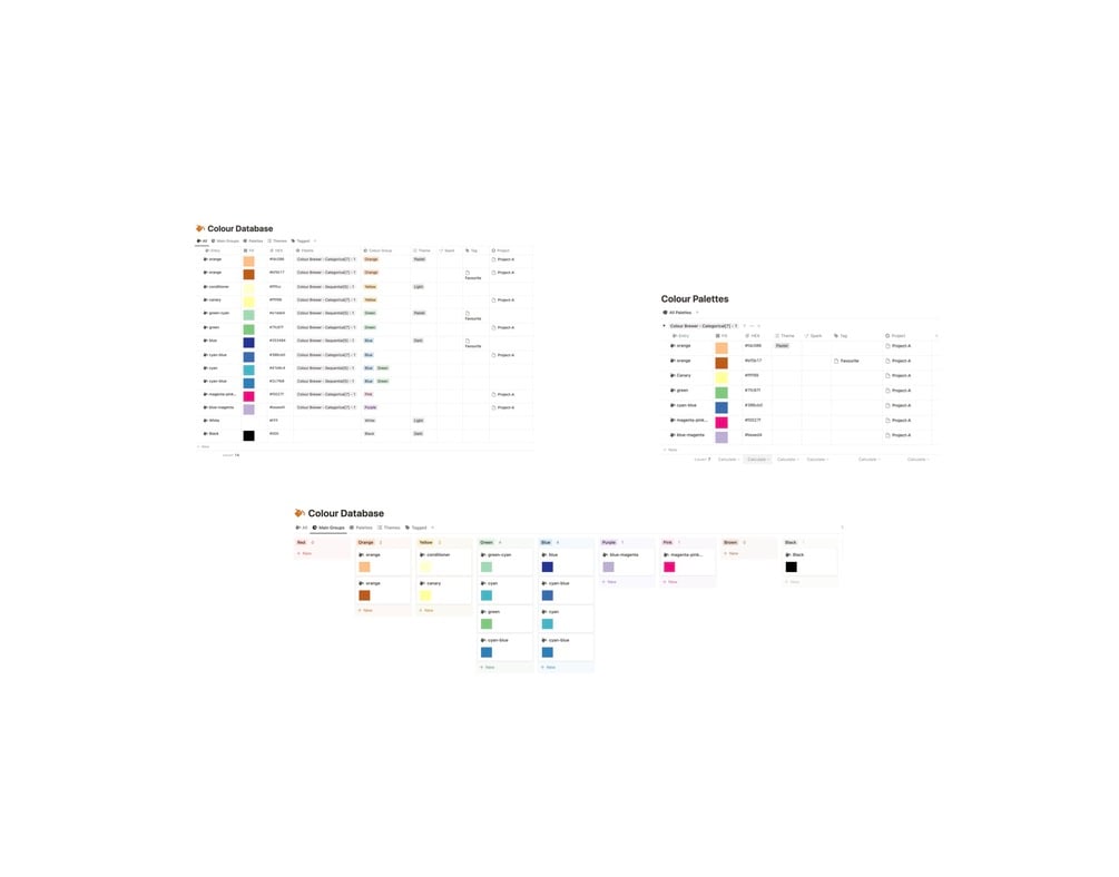 Use this minimalistic and colourful database to organise your colours in different ways: